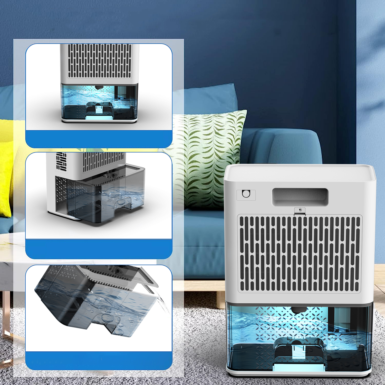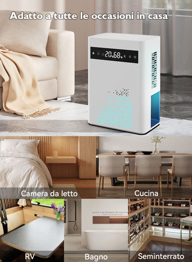 Questo deumidificatore portatile misura circa: 25,4 (Lunghezza) * 15,5 (Larghezza) * 36 (altezza) cm, in grado di coprire una gamma di 73 metri quadrati. Perfetto da usare come deumidificatore per camere da letto, deumidificatore per armadi, deumidificatore per bagni. Ampiamente utilizzato in cantina, garage, cucina e altre occcasioni.