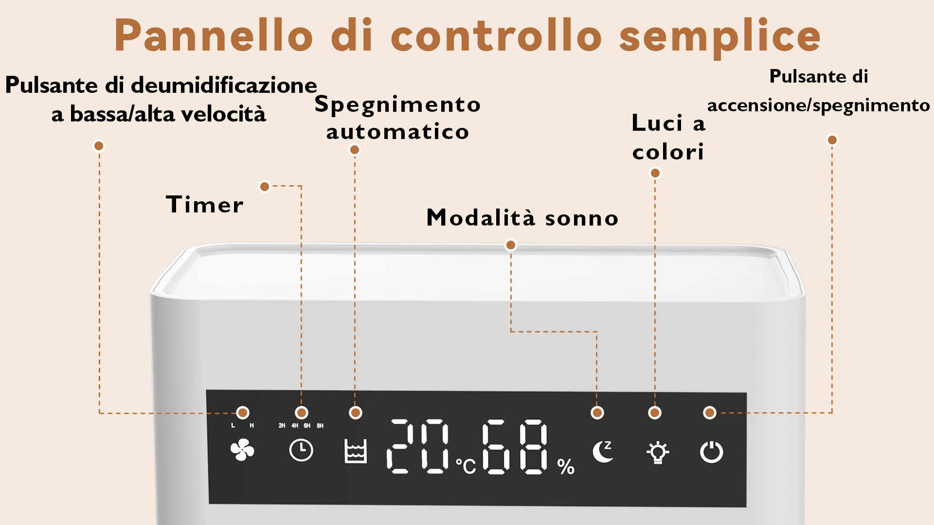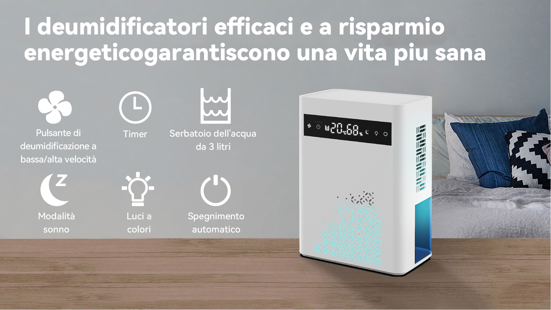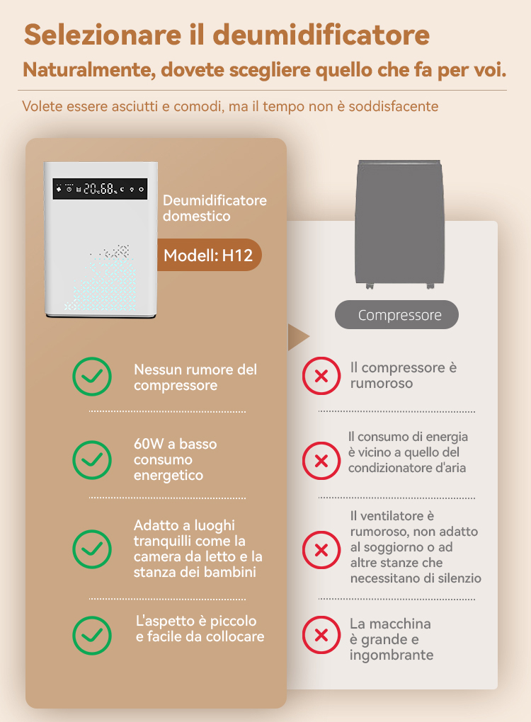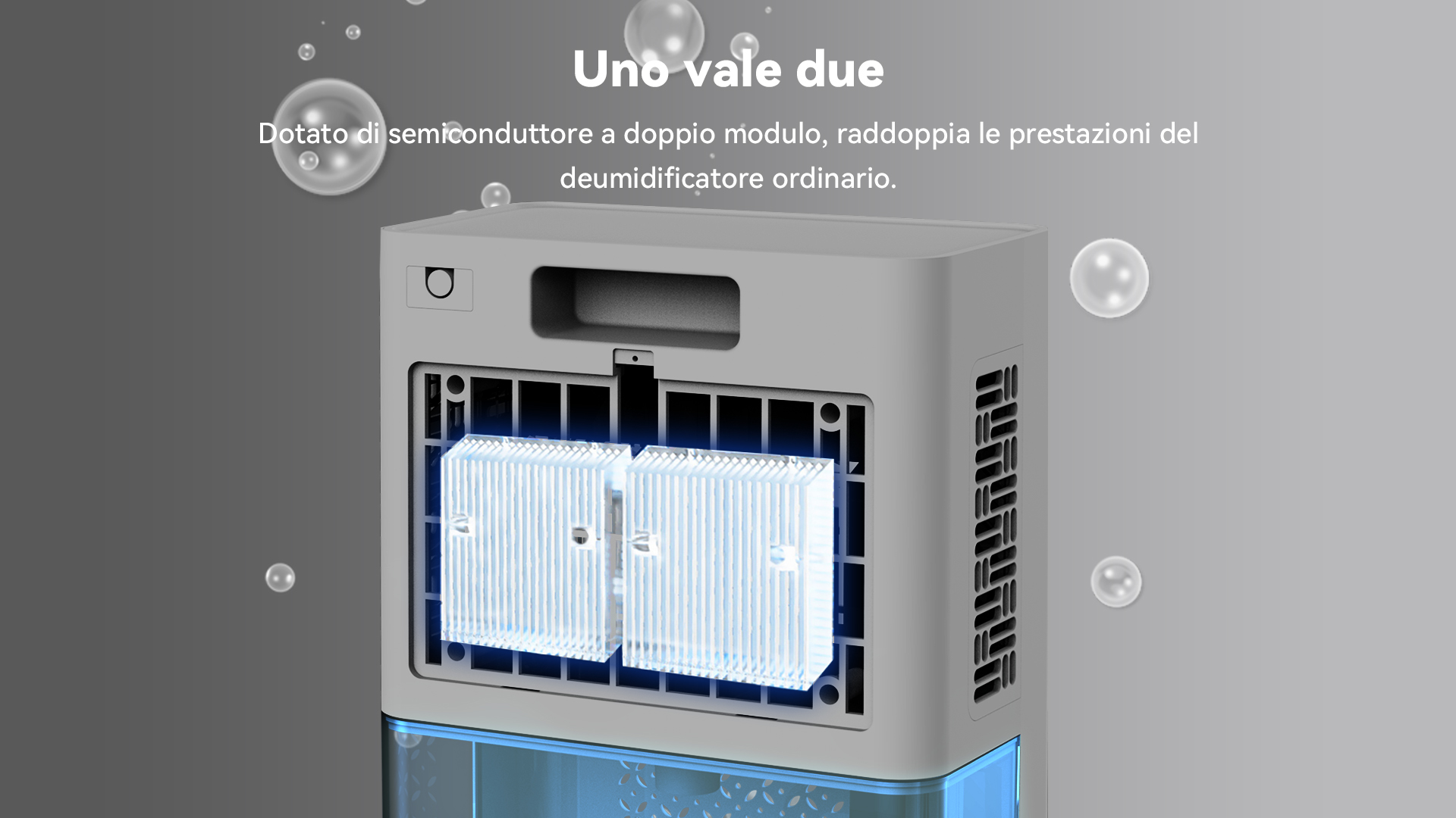 Preleva l'umidità dall'aria per rendere più confortevole l'ambiente grazie a una tecnologia di deumidificazione altamente efficiente.