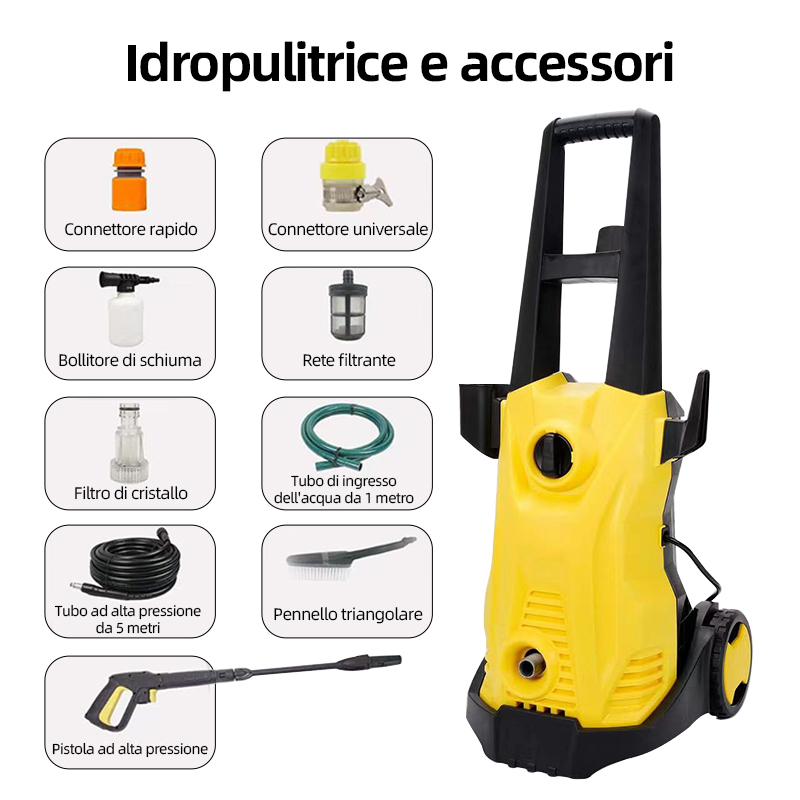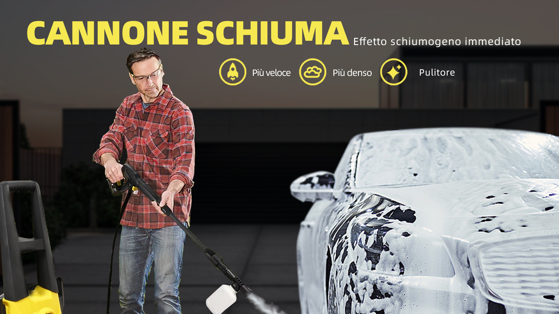 Dotata di un potente motore da 1800 W e di una pompa dell'acqua in alluminio di alta qualità che la rende resistente alla ruggine e alla corrosione, il che significa che è estremamente resistente e aiuta a prolungare la durata dell'idropulitrice. Con una portata massima di 420 l all'ora, gestirà con facilità anche il compito di pulizia più impegnativo.
