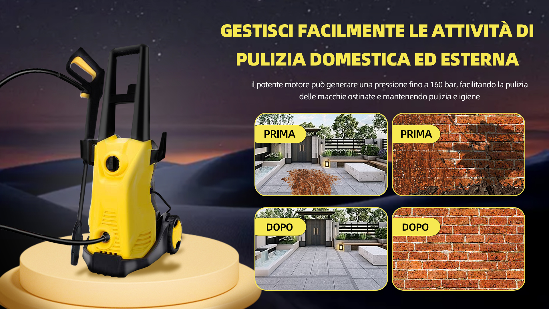 La nostra idropulitrice è progettata con un design robusto e impermeabile, che garantisce prestazioni affidabili anche negli ambienti più difficili. Che si tratti di progetti all'aperto o di attività di pulizia al chiuso, è costruita per resistere all'esposizione all'acqua senza compromettere l'efficienza o la sicurezza. In questo modo, prolunga la durata dell'attrezzatura.