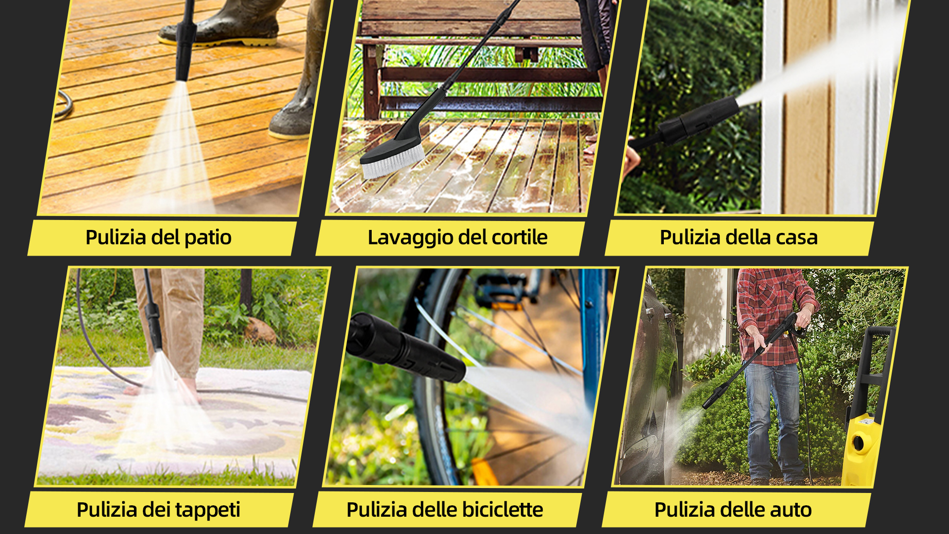 Con setole morbide particolarmente efficaci, questa spazzola aumenta le capacità di pulizia dell'idropulitrice. È perfetta per l'uso su un'ampia gamma di superfici, tra cui mobili da giardino, vetri, auto e veicoli. Ti aiuta a pulire grandi aree esterne e a stancarti in modo rapido e semplice.